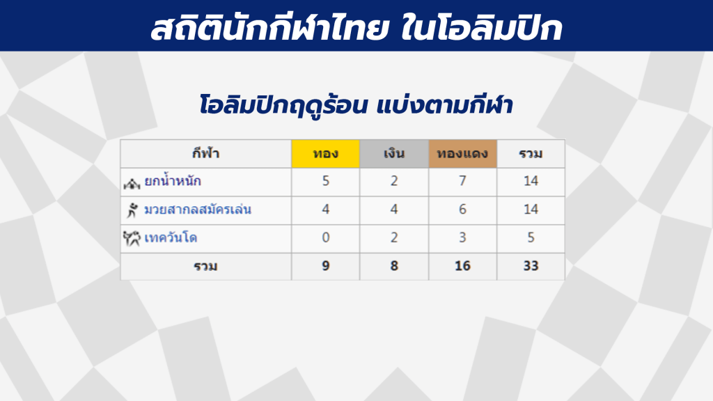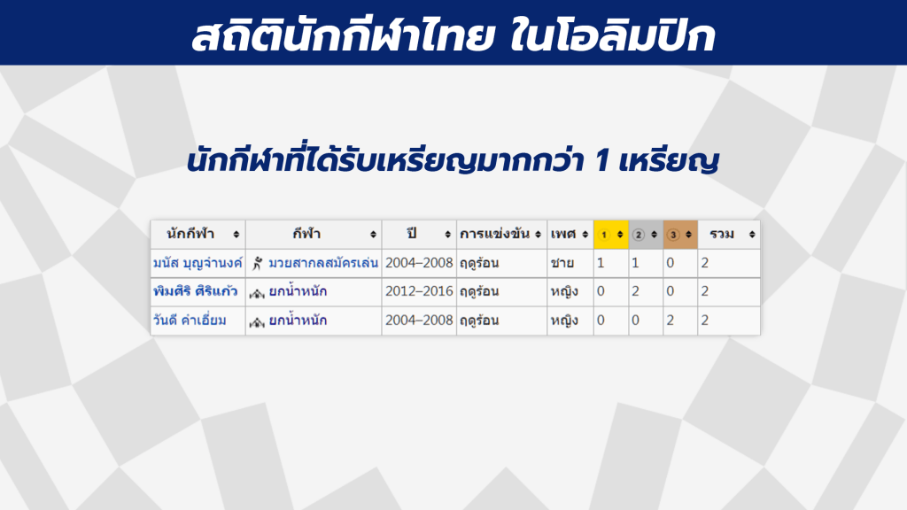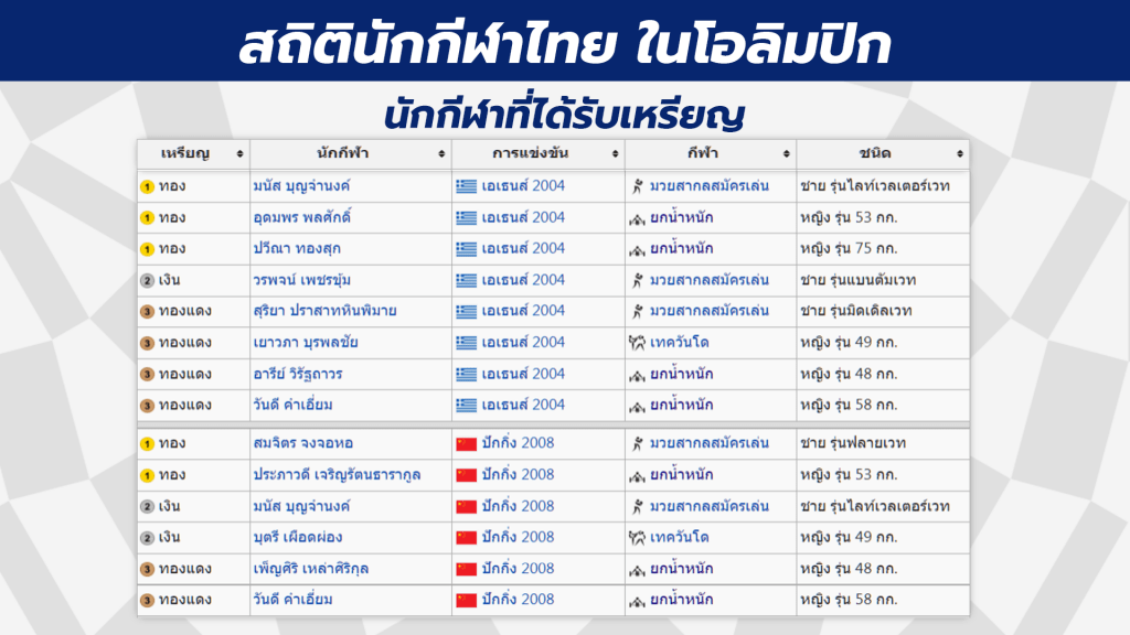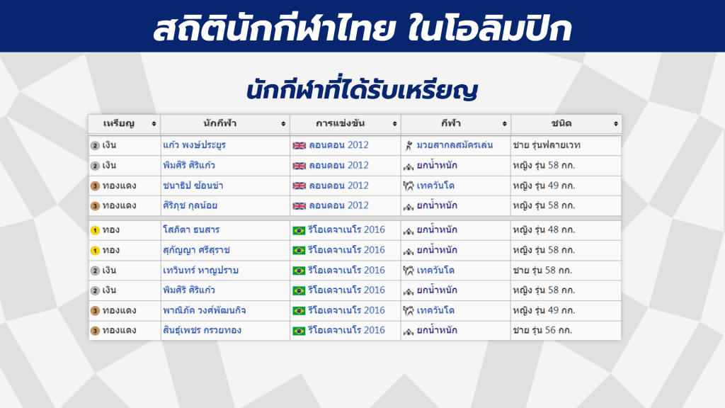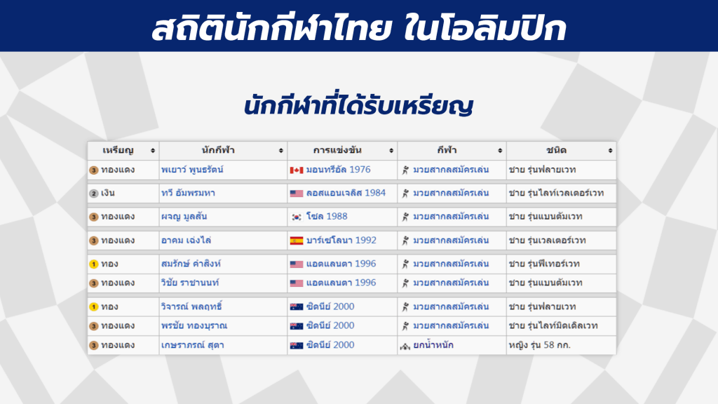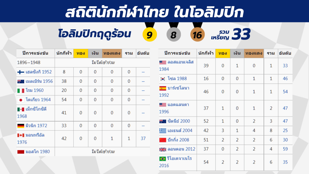 สถิตินักกีฬาไทยในกีฬาโอลิมปิก ที่น่าสนใจ