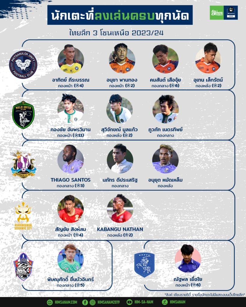 ในฤดูกาลที่ผ่านมา มีผู้เล่นของหลายสโมสร ไทยลีก 3 โซนเหนือ ที่ลงสนามรับใช้ต้นสังกัดครบทั้ง 20 นัด ฮิมสนามรวบรวมมานำเสนอ