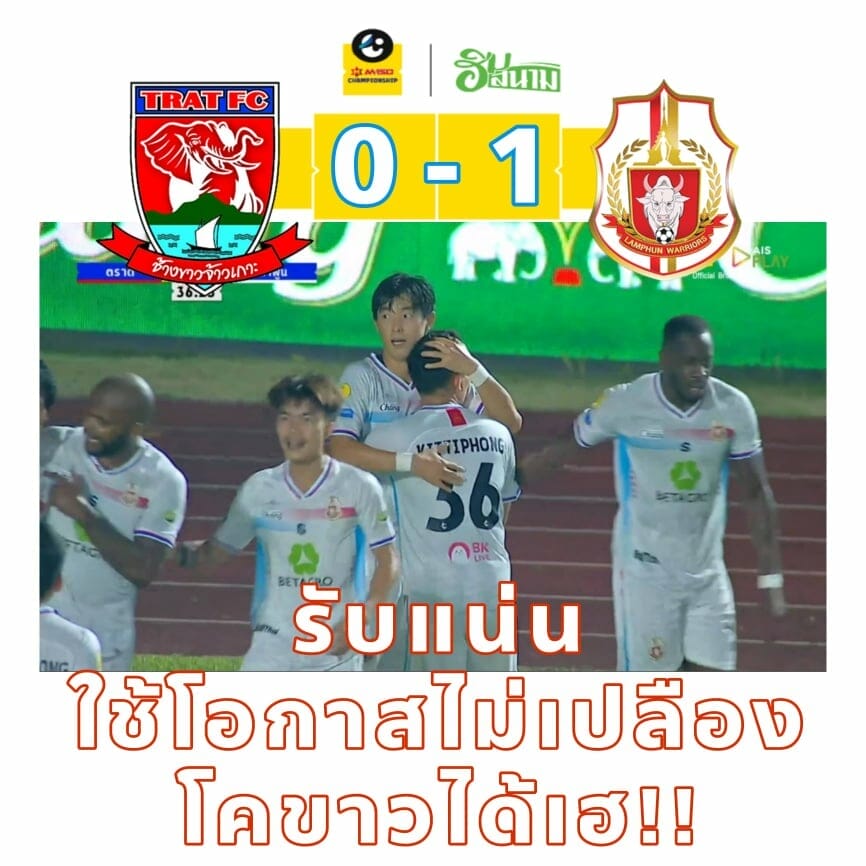 อี้ก้า… โคขาว.. ลำพูนวอริเออร์ เก็บสามแต้มใหญ่ๆ กลับถิ่น หลังบุกยัดเยียดความปราชัยนัดเเรกของ ฤดูกาล ให้กับตราด เอฟซี จ่าฝูง 1-0 จากลูกโหม่งของ ควอนเเตฮี กองหลังชาวเกาหลีใต้ จากการเปิดของ หม่อง ลวิน ในครึ่งแรก นาที37