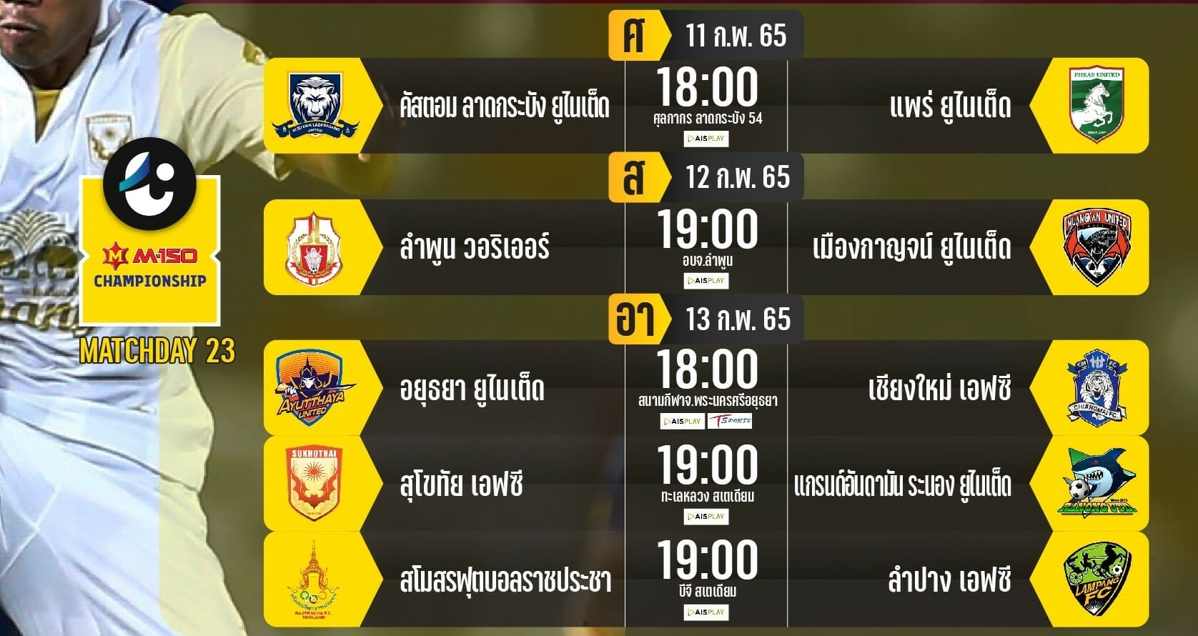 18.00 คัสตอม ลาดกระบัง ยูไนเต็ด พบ แพร่ ยูไนเต็ด