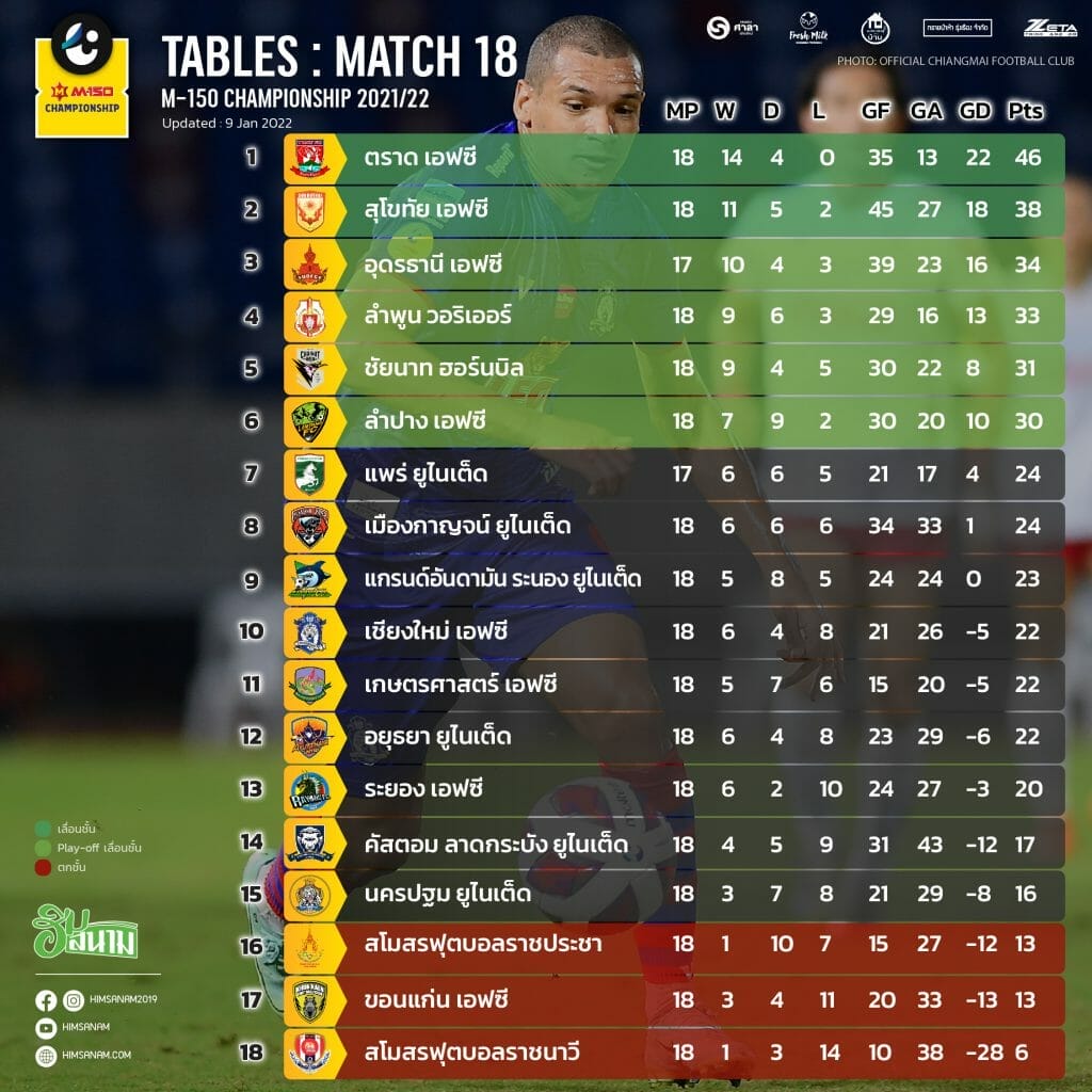 *ลำปางเอฟซี เสมอเป็นเกมที่ 9 จาก 18 นัด หล่นมาอยู่อันดับ 6
