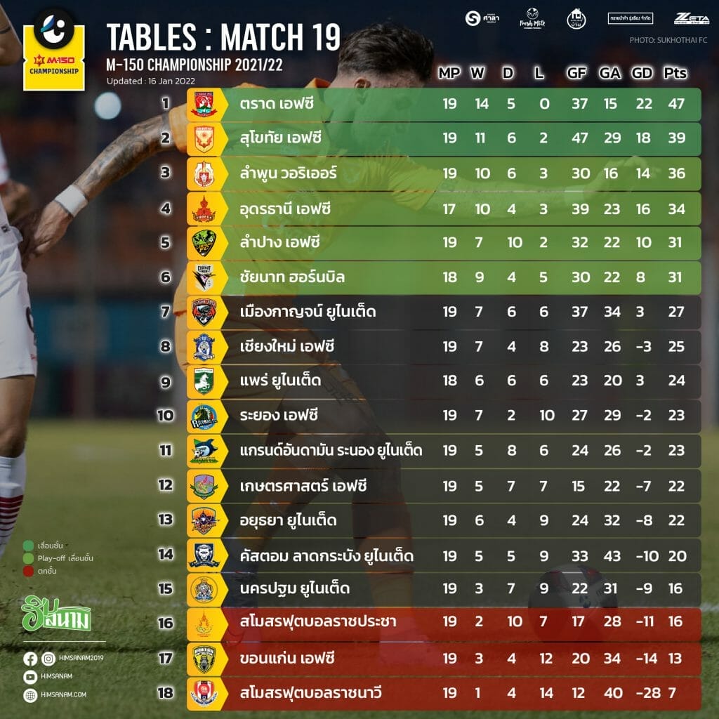 *ลำปาง เอฟซี เสมอเป็นนัดที่ 10 จาก 19 นัด เท่ากับราชประชา 10 นัดหลังสุด แพ้นัดเดียว แต่ก็เก็บสามแต้มได้เพียงนัดเดียวเช่นกัน