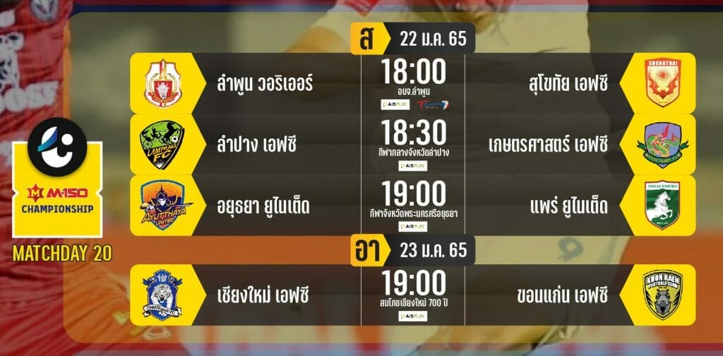อยุธยา ยูไนเต็ด 19 : 00 แพร่ ยูไนเต็ด