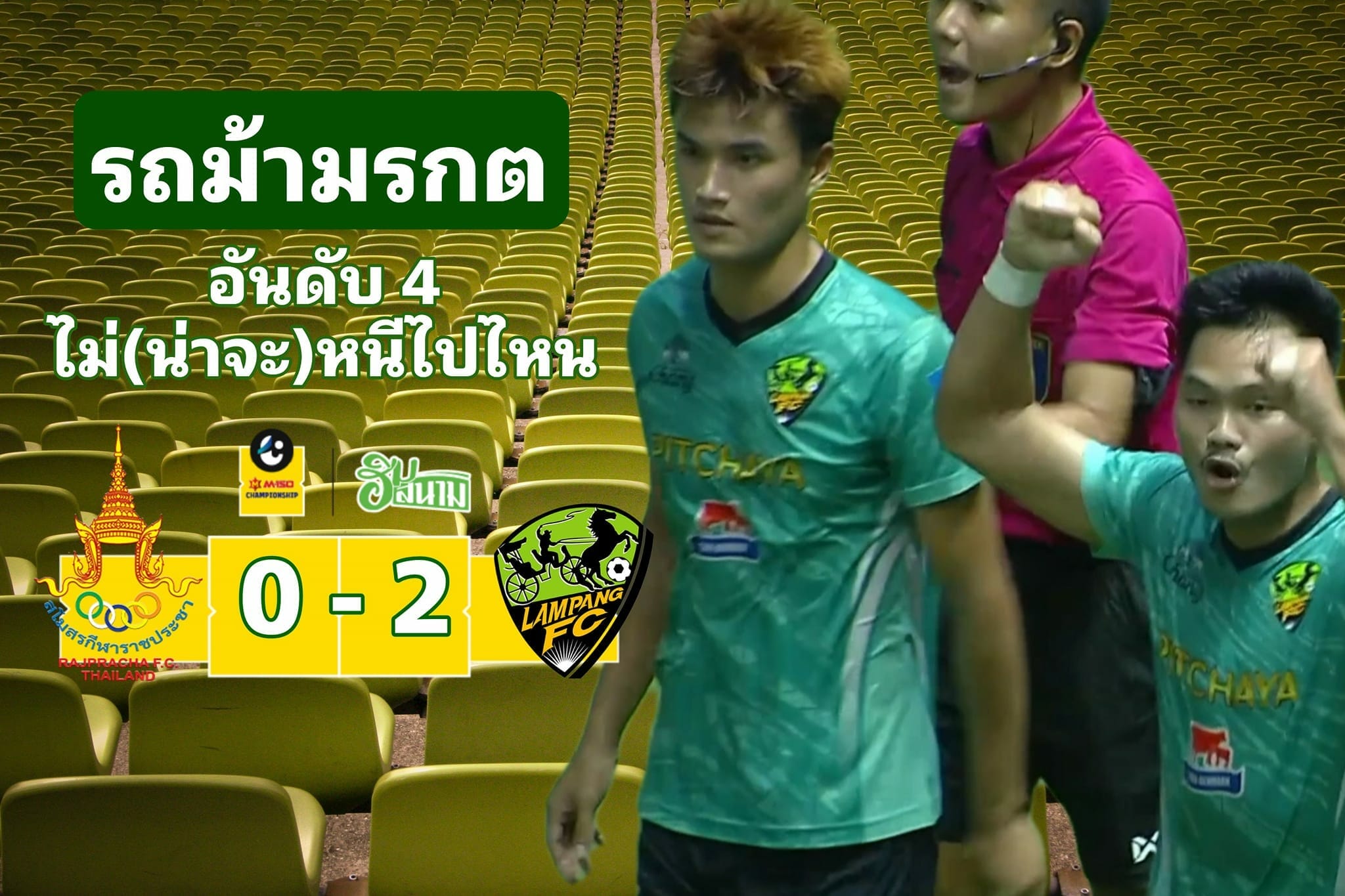 ลำปาง เอฟซี บุก บด บี้ ราชประชาทีมจอมเสมอ ไป 2-0 จาก 2นักเตะที่เพิ่งทำประตูได้ในเกมเปิดบ้านชนะอุดรฯด้วยสกอร์เดียวกัน เริ่มจาก Deyvison ครึ่งแรก จักราวุธ สงมา ครึ่งหลัง