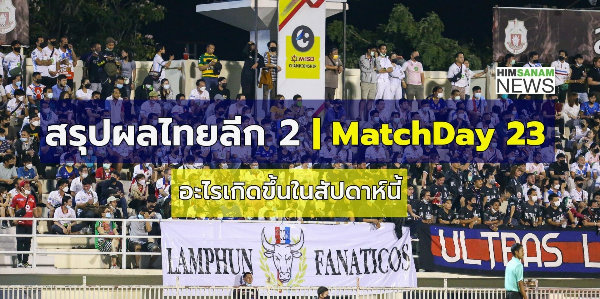 Match Day 23 | ผ่านพ้นสัปดาห์นี้ไป ไทยลีก2 กำลังเข้าสู่โหมด 10 นัดสุดท้าย ในสัปดาห์หน้า โดยในสัปดาห์นี้ ผลงานของ 5 สโมสรฯโซนเหนือ ส่วนใหญ่แฮปปี้ดี้ด้า ไม่ว่าจะเป็น 2 ท็อปทีมหัวตาราง ทั้ง สุโขทัย เอฟซี และ ลำพูนวอริเออร์ ที่ไม่ยอมน้อยหน้ากัน ต่างก็ไล่อัดคู่แข่งขันที่มาเยือนอย่างสนุก รวมถึง ลำปาง เอฟซี ที่บุกชนะทีมที่แพ้ยาก(แต่ก็ชนะยากด้วย) อย่างราชประชา และ แพร่ ยูไนเต็ด ที่ล่าสุดแม้จะมีการเปลี่ยนแปลงอีกครั้ง ตั้ง “โค้ชดาท” ธงชัย รุ่งเรืองเลิศ เป็นหัวหน้าผู้ฝึกสอน รับงานต่อจาก “โค้ชแป๊ะ” พิชิตพงษ์ เฉยฉิว แต่กับผลงานสัปดาห์ที่ผ่านมาก็คงต้องให้เครดิต “โค้ชแป๊ะ” ที่พาทีมแซงชนะคัสตอม ลาดกระบัง จะมีก็แต่เพียง เชียงใหม่ เอฟซี ที่ออกไปพลาดท่าต่อ อยุธยา ยูไนเต็ด ทั้งๆที่ออกนำก่อน โดยหลังเกมก็เกิดกระแสดราม่าของแฟนบอลพยัคฆ์ล้านนาต่อสโมสรฯ ทันที ส่วนภาพรวมและรายละเอียดของการแข่งขัน ไทยลีก2 สัปดาห์ที่ผ่านมาเป็นอย่างไร เรามาติดตามกันครับ