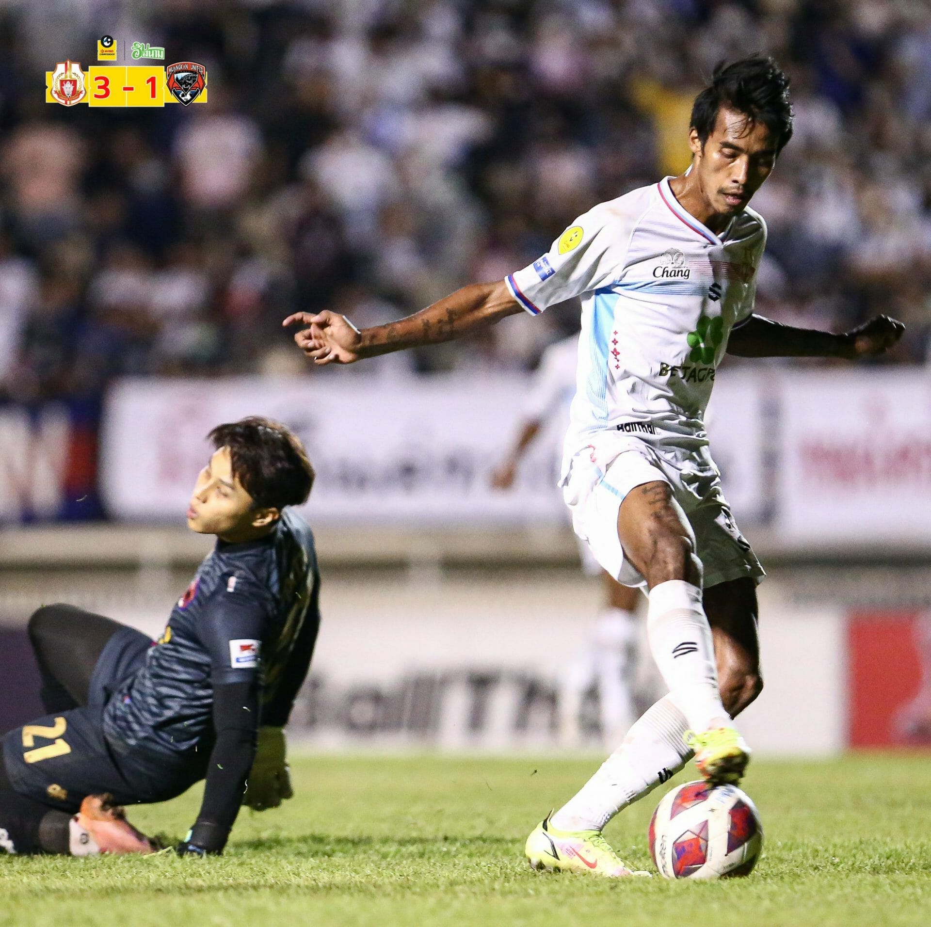 ราชันโคขาว เดินหน้าไล่ล่าสามแต้มอย่างต่อเนื่อง สัปดาห์นี้กลับมาเล่นในแม่กวงฯ ไล่ยำ ค้างคาวมหากาฬ คู่ปรับเก่า ยับ 3-1 ครึ่งแรกจบ 1-1 ชลวิทย์ คะนึงคิด ยิงให้เจ้าบ้านนำ ก่อน แต่ ช่วงท้ายครึ่งแรก Assumpcao ดางยิงตัวเก่งของผู้มาเยือนยิงประตูตามตีเสมอ ซึ่งดูจากภาพช้า เป็นจังหวะก้ำกึ่งว่าล้ำหน้า แต่เข้าสู่ครึ่งหลัง เจ้าบ้านเดินเครื่องเต็มตัว ส่ง “โฟร์แบ” ลงเสริมเกมรุก เร่งจนได้ประตูเพิ่มอีกสองประตูจาก จุดโทษของ Thales เป็นประตูที่ 5 ในสีเสื้อโคขาว และ Maung Lwin ที่วันนี้กัปตันทีมชาติเมียนมาร์ เล่นอย่างเด่น จบเกมส์ ด้วยสกอร์ เจ้าบ้านชนะ 3-1
