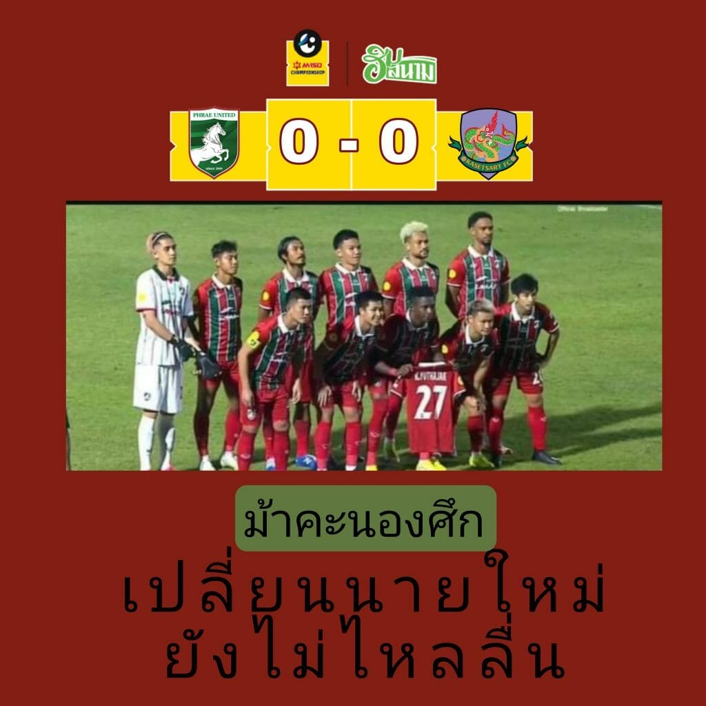 แพร่ยูไนเต็ด เปลี่ยนนายใหม่เกมยังไม่ไหลลื่น เปิดบ้านเสมอเกษตรฯ 0-0