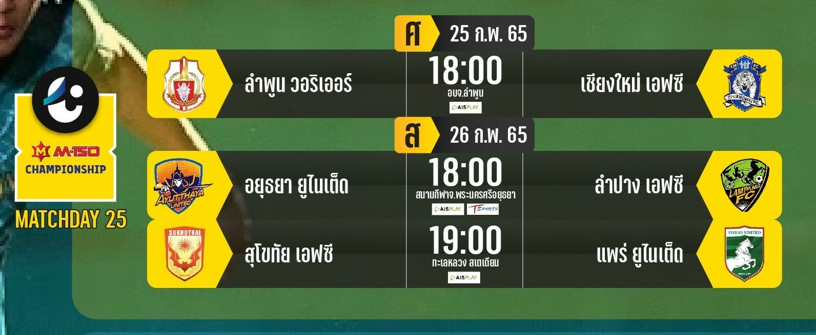 โปรแกรมนัดต่อไป Match Day 25