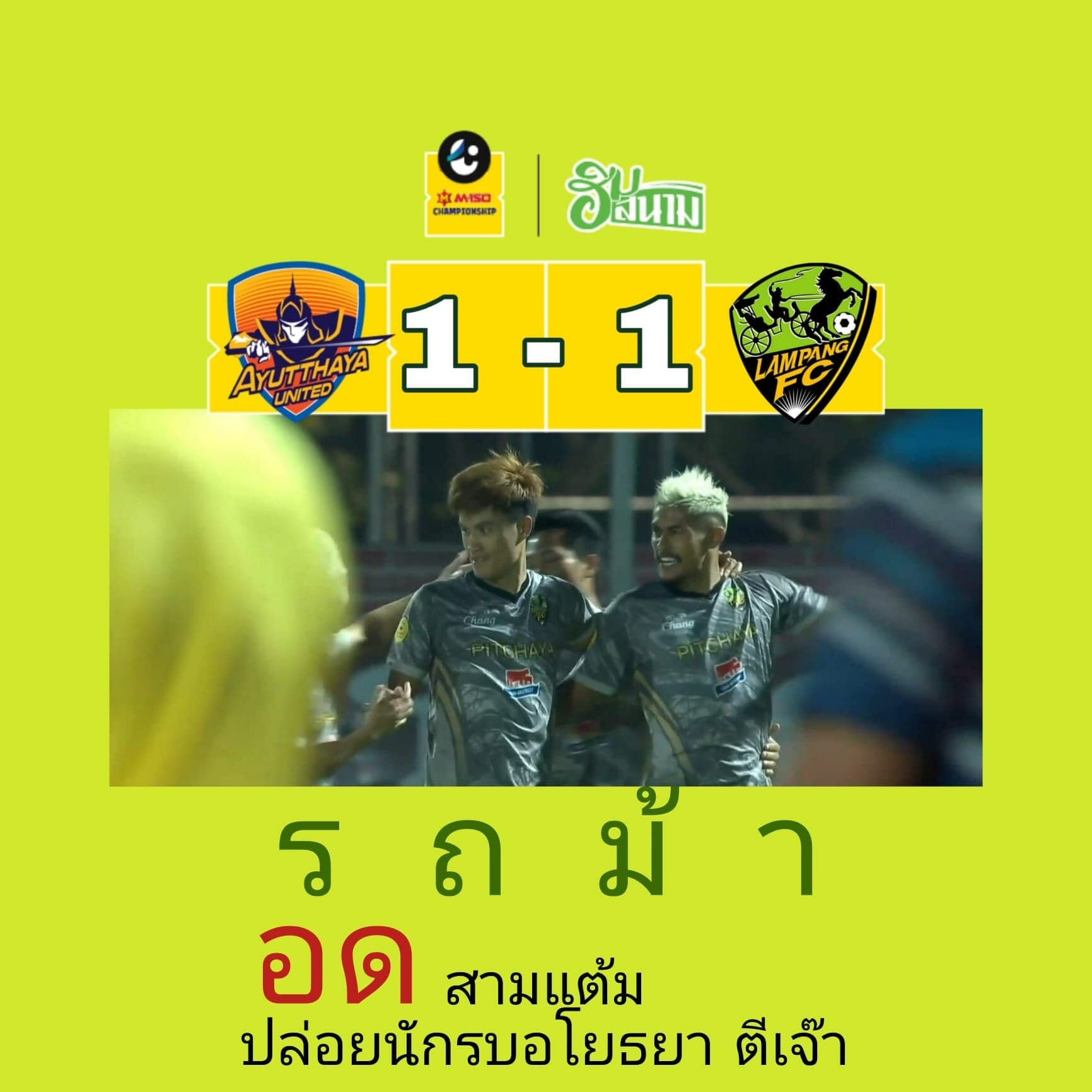 รถม้า พลาดเก็บชัยสี่นัดติด หลังปล่อยนักรบอโยธยาไล่ตีเสมอ