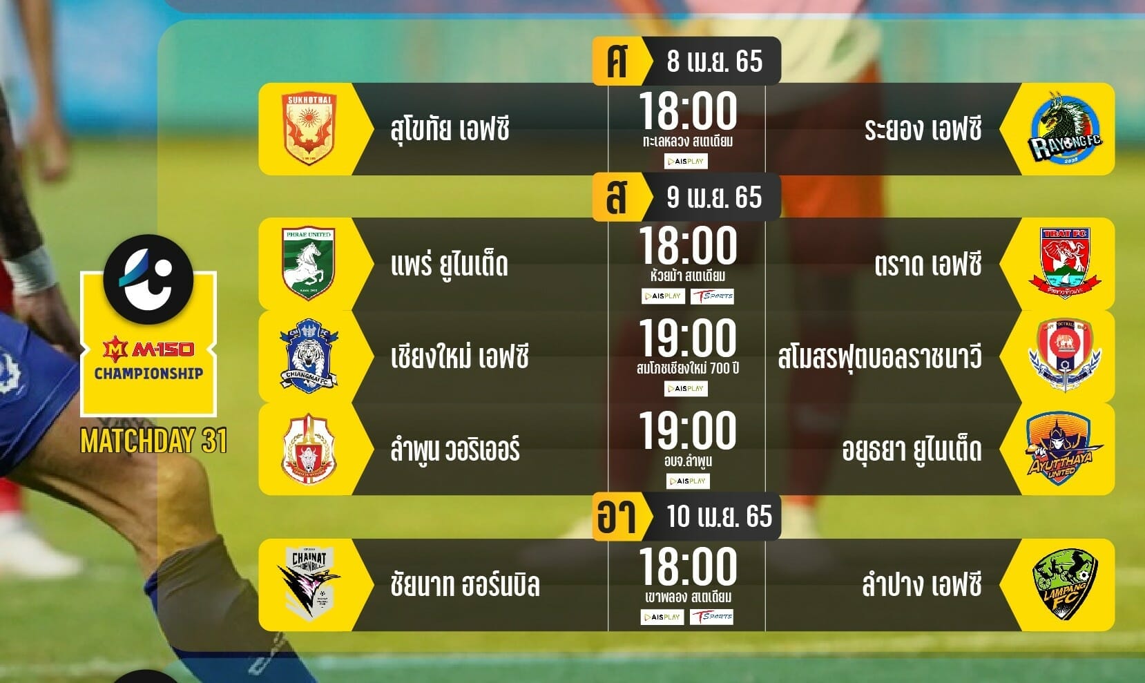 โปรแกรมการแข่งขัน|MATCHDAY 31
