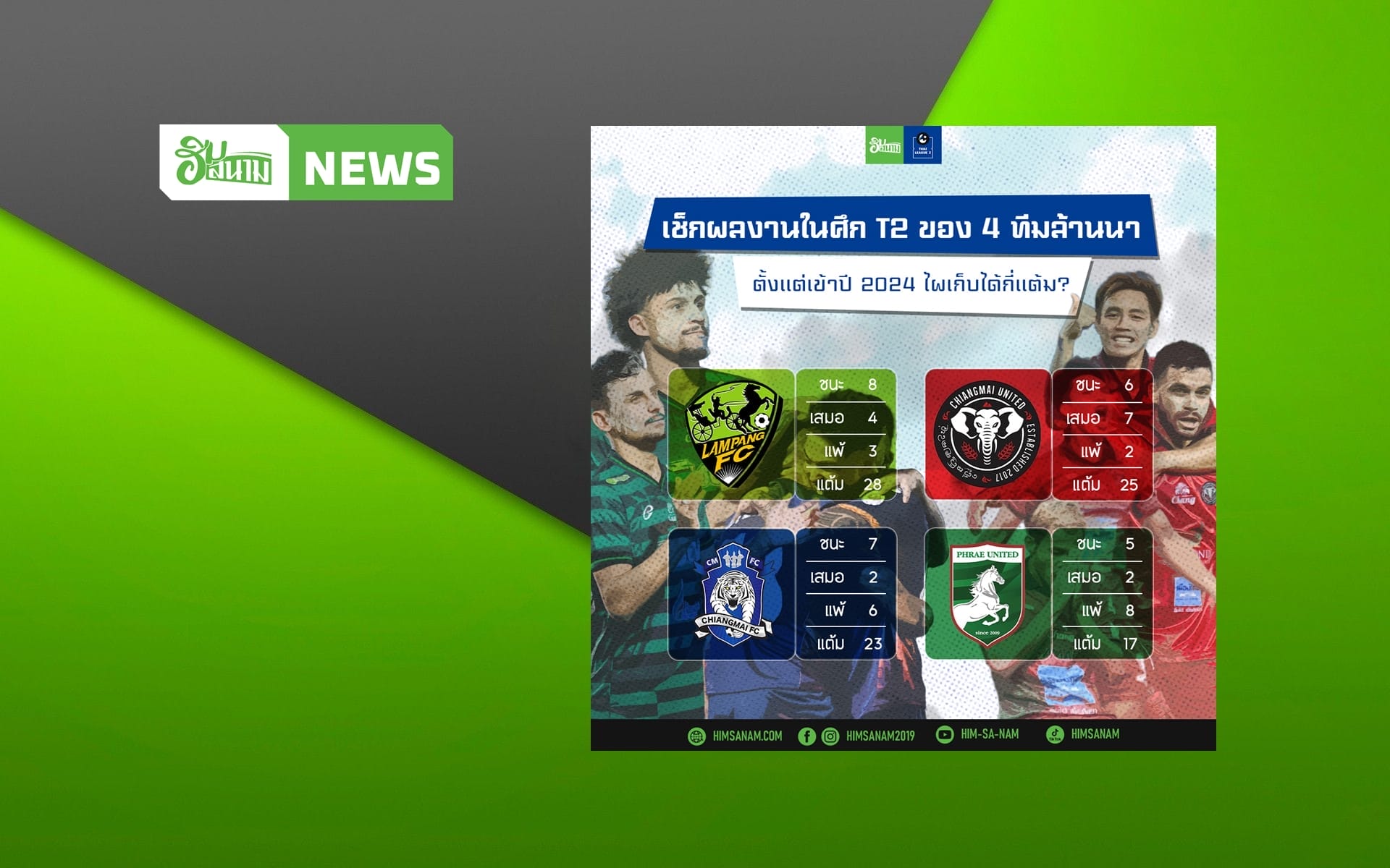 เช็กผลงานในศึก T2 ของ 4 ทีมล้านนา