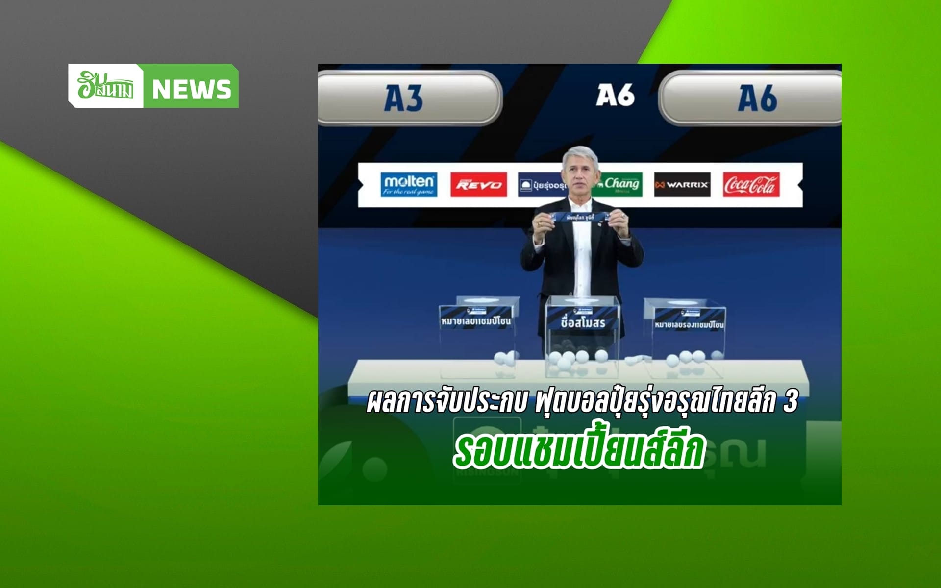 วันที่ 27 กุมภาพันธ์ 2567 ที่ Thai League Virtual Studio เวลา 14.00 น. ดร.ชาญวิทย์ ผลชีวิน อุปนายกสมาคมฯ พร้อมด้วย คุณยุคเลศร์ อุ่นใจ ประธานเจ้าหน้าที่ฝ่ายปฏิบัติการ บริษัท ปุ๋ยไวกิ้ง จำกัด ร่วมกันจับสลาก การแข่งขันฟุตบอล ปุ๋ย รุ่งอรุณ ไทยลีก 3 รอบแชมเปี้ยนส์ ลีก เพื่อหาอีก 3 ทีม เลื่อนชั้นขึ้นสู่ ไทยลีก 2 ในฤดูกาล 2024/25