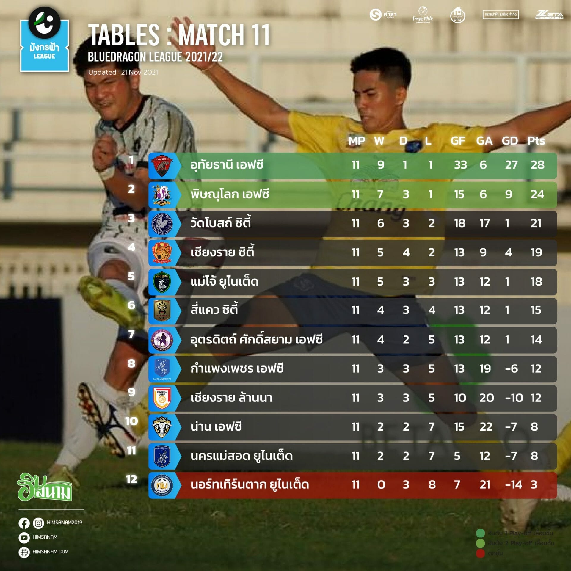 สรุปผล BlueDragonLeague 2021/22 – ไทยลีก3 โซนเหนือ | Matchday 11