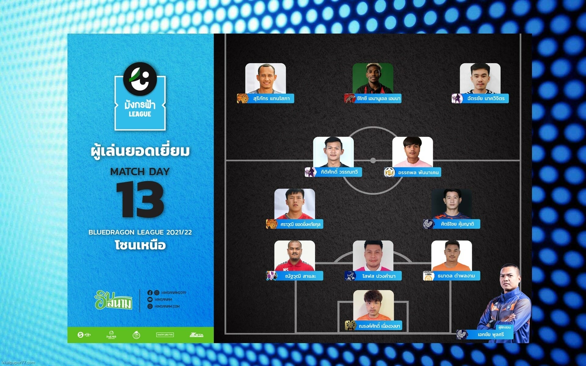 Team of the week BlueDragonLeague 2021/22 – ไทยลีก3 โซนเหนือ | Matchday 13