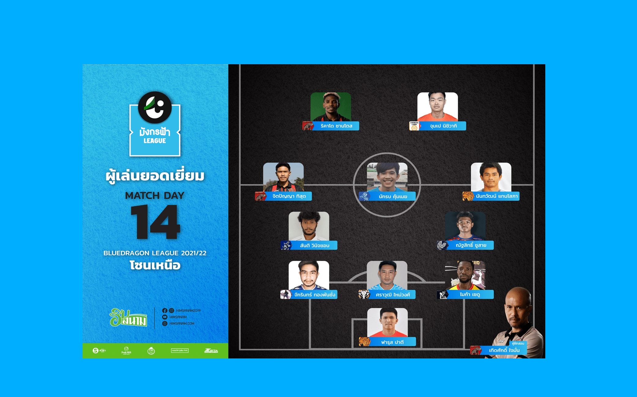 ทีมงานฮิมสนามเลือก 11 นักเตะเด่น ในสัปดาห์ที่14 ของไทยลีก3 โซนเหนือ ดังนี้