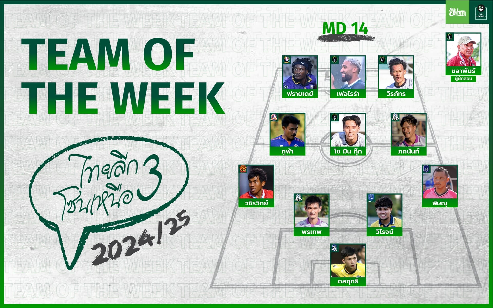 ทีมยอดเยี่ยม ไทยลีก 3 โซนเหนือ ฤดูกาล 2024 วันที่ 2 กุมภาพันธ์ 2568 | รอบการแข่งขัน 14