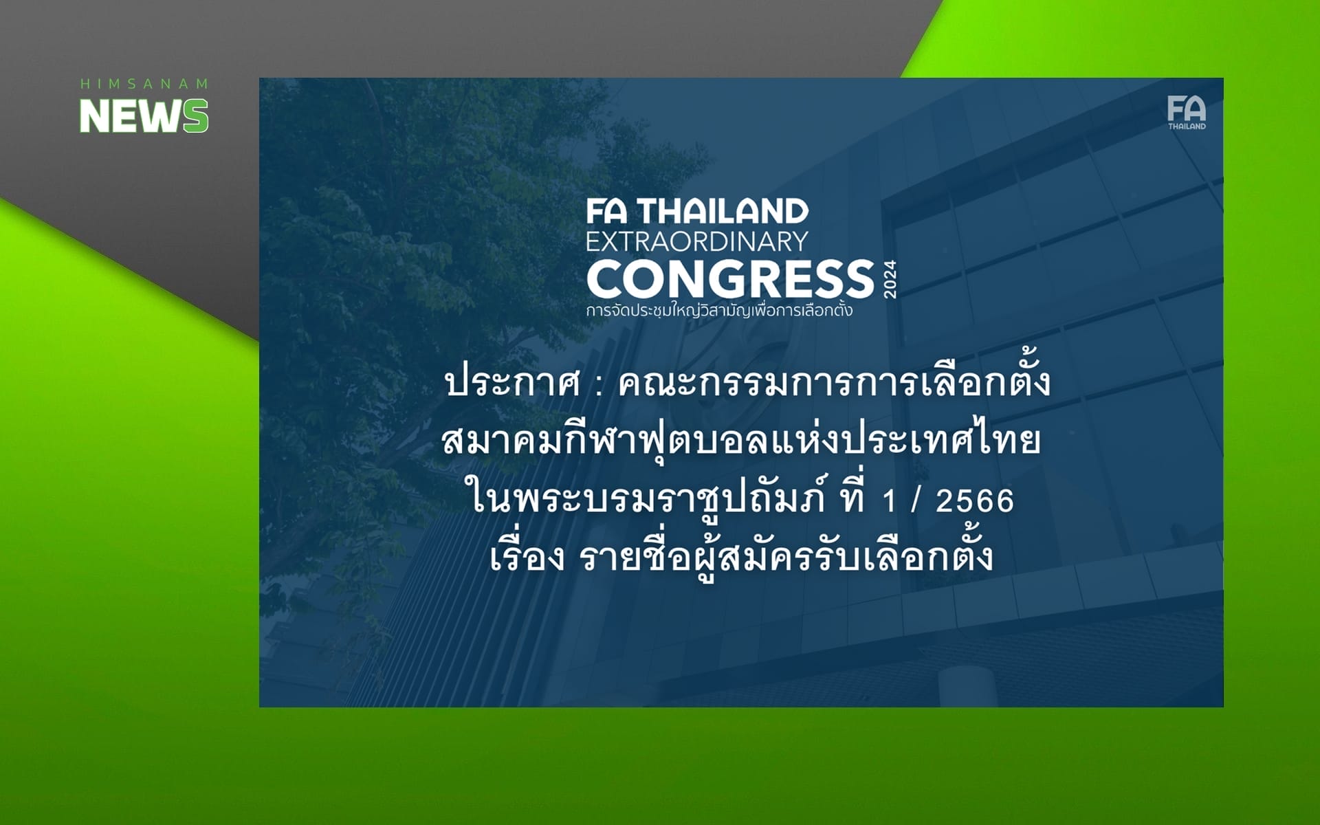 ด้วย คณะกรรมการการเลือกตั้ง พิจารณารายชื่อและหลักฐานของผู้สมัครรับเลือกตั้งเป็น สภากรรมการ และองค์คณะตุลาการ สมาคมกีฬาฟุตบอลแห่งประเทศไทย ในพระบรมราชูปถัมภ์ ในคราวประชุมครั้งที่ 4/2566 เมื่อวันที่ 19 ธันวาคม 2566 แล้ว อาศัยข้อบังคับลักษณะการปกครองของสมาคมกีฬาฟุตบอล แห่งประเทศไทยฯ และระเบียบว่าด้วยการเลือกตั้งของสมาคมกีฬาฟุตบอลแห่งประเทศไทยฯ พ.ศ. 2565 จึงประกาศรายชื่อผู้สมัครที่มีสิทธิลงสมัครรับเลือกตั้ง ผู้สมัครที่ถูกตัดสิทธิลงสมัครรับเลือกตั้ง และผู้สมัครรับเลือกตั้งที่ต้องส่งเอกสารเพิ่มเติม ตามรายชื่อดังต่อไปนี้