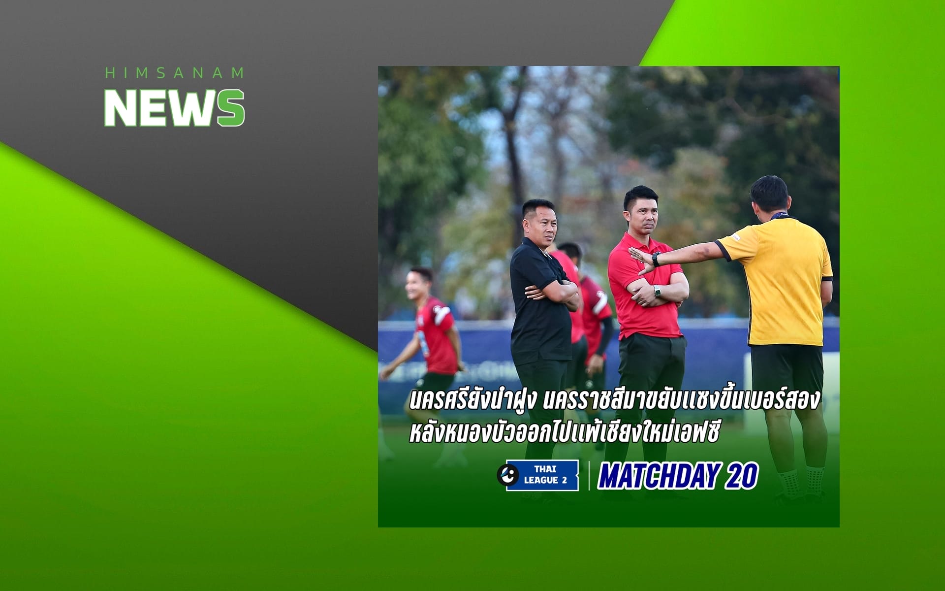 นครศรียูไนเต็ด ยังครองจ่าฝูงไทยลีก 2 เป็นสัปดาห์ที่ 4 ติดต่อกัน หลังเปิดบ้านชนะระยองเอฟซีแบบไม่อยาก 3-1 ส่วนอันดับสองเปลี่ยนหน้ามาเป็น นครราชสีมา มาสด้าเอฟซี ที่ เปิดบ้านเอาชนะลำปางเอฟซี 2-0 โดย เดย์วิสัน เฟอร์นานเดซ ยิง 1 จากจุดโทษใส่ทีมเก่า ทำให้รั้งดาวซัลโวของลีกต่อไปที่ 12 ประตู