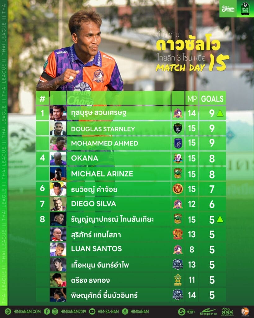 อันดับดาวซัลโว ไทยลีก 3 โซนเหนือ ล่าสุด