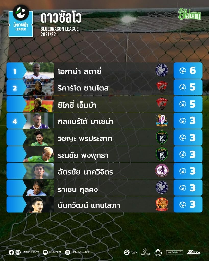 ส่วนภาพรวม Okana ดาวซัลโว สูงสุดของโซน ยังรั้งตำแหน่งต่อไปอีกสัปดาห์ หลังยิง 1 ประตูในเกมส์ บุกชนะ อุตรดิตถ์ ศักดิ์สยาม เอฟซี ยิงรวม 6 ประตู ส่วนอันดับสอง 5 ประตู มีสองคน คนแรก Ricardo Santos ของ จ่าฝูงอุทัยธานี เอฟซี ที่ยิงเรื่อยๆลล่าสุดซัดไป 2 ในนัดเปิดบ้านชนะ เชียงราย ล้านนา 2-0 ส่วนอีกคน ก็ไม่ใช่ใครที่ไหน Chigozie เพื่อนร่วมทีม ของ Santos นั่นเอง