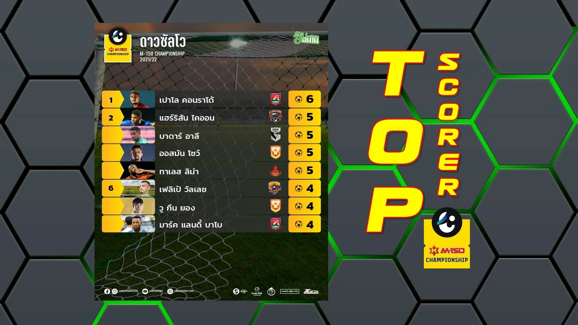 TOP SCORER M-150 Championship 2021/22 หลังผ่านนัดที่ 6