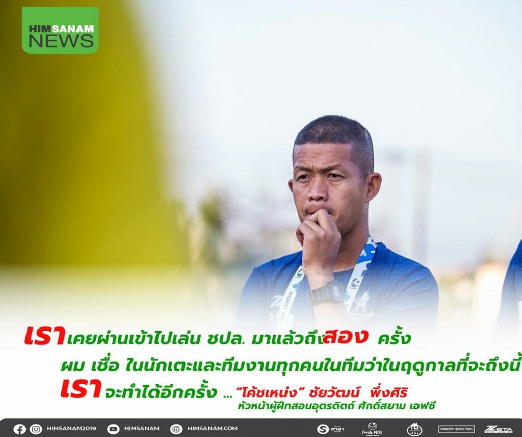“โค้ชเหน่ง” ชัยวัฒน์ พึ่งศิริ กุนซือคนล่าสุดของ “ดาบหักพิฆาต” อุตรดิตถ์ ศักดิ์สยาม เอฟซี ยอมรับทั้งดีใจและตื่นเต้นที่ได้รับหน้าที่หัวหน้าผู้ฝึกสอน ซึ่งในฤดูกาลที่ผ่านมาก็เคยทำหน้าที่รักษาการฯมาแล้ว แต่มาครั้งนี้ต้องมาทำแบบเต็มตัวถือเป็นงานที่หนักขึ้นรวมถึงงานในหน้าที่ราชการที่ได้รับตำแหน่งสูงขึ้นความรับผิดชอบก็มากขึ้น แต่ก็ต้องพยายามจัดสรรเวลาให้ได้ เป้าหมายคือต้องผ่านเข้าไปเล่นรอบแชมเปียนส์ลีก เชื่อว่านักเตะและทีมงานชุดนี้ทำได้