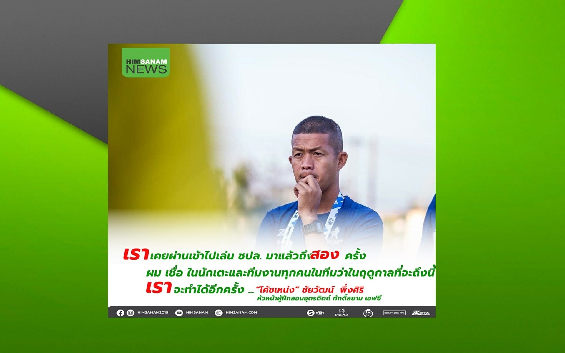 “โค้ชเหน่ง” ชัยวัฒน์ พึ่งศิริ กุนซือคนล่าสุดของ “ดาบหักพิฆาต” อุตรดิตถ์ ศักดิ์สยาม เอฟซี ยอมรับทั้งดีใจและตื่นเต้นที่ได้รับหน้าที่หัวหน้าผู้ฝึกสอน ซึ่งในฤดูกาลที่ผ่านมาก็เคยทำหน้าที่รักษาการฯมาแล้ว แต่มาครั้งนี้ต้องมาทำแบบเต็มตัวถือเป็นงานที่หนักขึ้นรวมถึงงานในหน้าที่ราชการที่ได้รับตำแหน่งสูงขึ้นความรับผิดชอบก็มากขึ้น แต่ก็ต้องพยายามจัดสรรเวลาให้ได้ เป้าหมายคือต้องผ่านเข้าไปเล่นรอบแชมเปียนส์ลีก เชื่อว่านักเตะและทีมงานชุดนี้ทำได้
