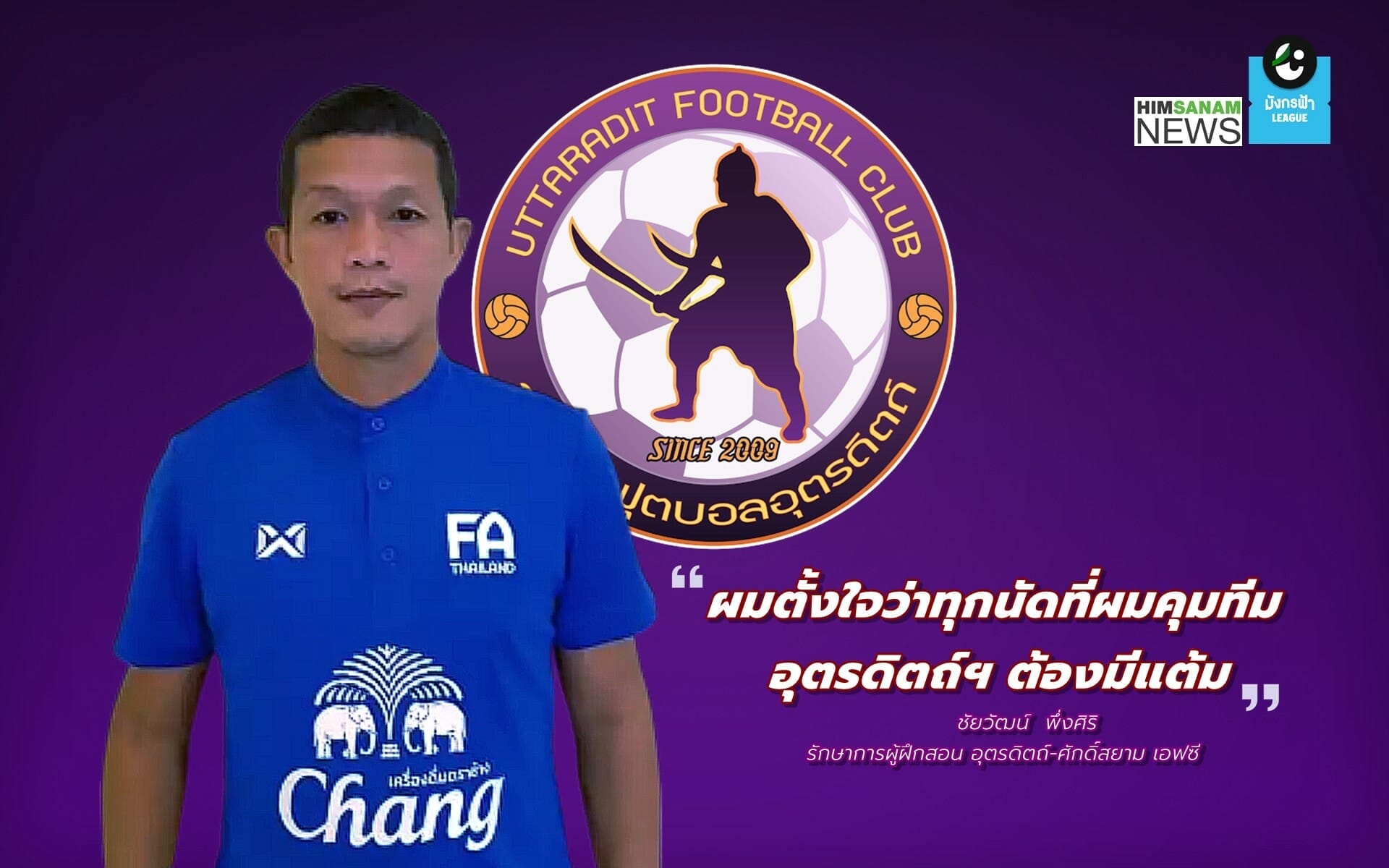 “หมวดเหน่ง” ชัยวัฒน์ พึ่งศิริ รักษาการโค้ช “ดาบหักพิฆาต” อุตรดิตถ์-ศักดิ์สยาม เอฟซี ขอทำหน้าที่ให้ดีที่สุดแม้จะเป็นแค่ “โค้ชขัดตาทัพ” หลังจากผ่านการอบรม ซี – ไลเซนต์ มาสดๆ ร้อน ๆ เหมือนได้ลองวิชาความรู้ที่เรียนมา และขอขอบคุณผู้ใหญ่ที่ให้โอกาสได้รับใช้บ้านเกิดในฐานะโค้ช หากมีโอกาสได้ทำต่อเนื่องจะขอปลุกกระแสฟุตบอลอุตรดิตถ์ให้กลับมาบูมอีกครั้ง