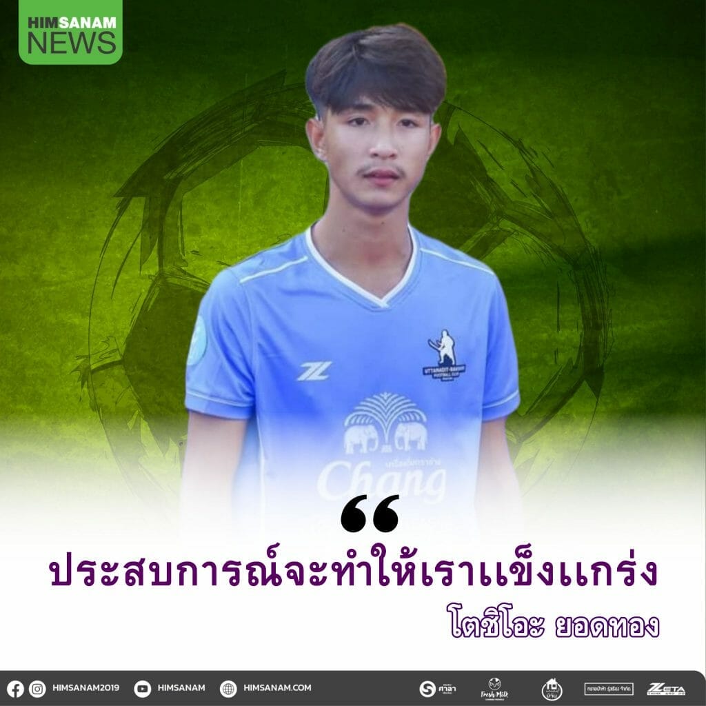 “เอิร์ท” โตชิโอะ ยอดทอง แข้งดาวรุ่ง หน้าใส วัย 19 ปี “ดาบหักพิฆาต” อุตรดิตถ์ ศักดิ์สยาม เอฟซี รู้สึกมั่นใจและมีความมุ่งมั่นมากขึ้นหลังลงเล่นในตำแหน่งกองหน้าและทำประตูได้ในนัดที่เอาชนะ สี่แคว ซิตี้ 2-1 พร้อมทำหน้าที่ในนัดที่เหลือให้ดีที่สุดไม่ว่าจะถูกส่งลงเล่นตำแหน่งไหน เป้าหมายในใจคือทีมจบอันดับ1ใน5