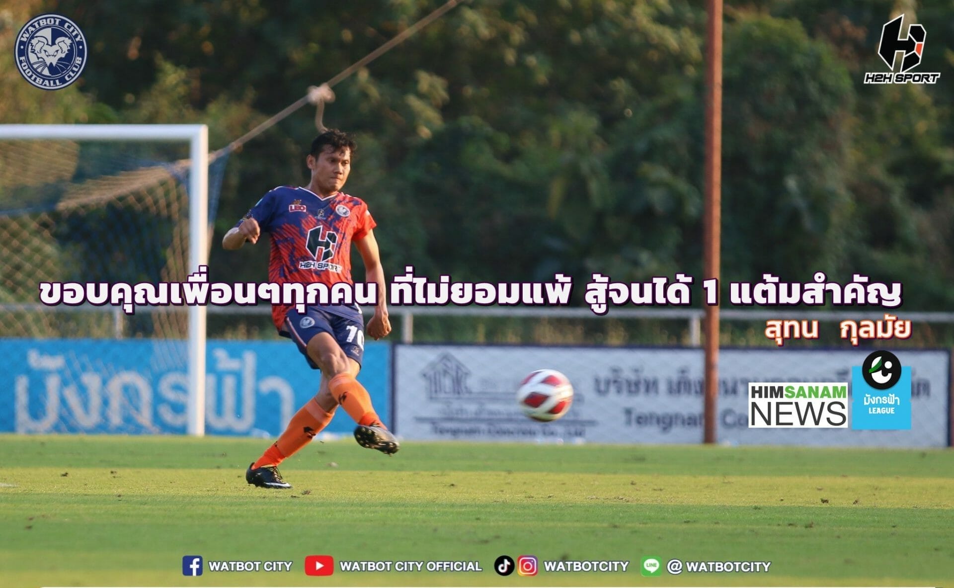 “กอล์ฟ” สุทน กุลมัย มิดฟิลด์วัยใกล้เลข 4 ฮีโร่ผู้ทำประตูตีเสมอช่วงทดเวลาบาดเจ็บ ให้ “หนูนาจอมโหด” วัดโบสถ์ ซิตี้ รอดพ้นจากความพ่ายแพ้นัดพบกับ “ดาบหักพิฆาต” อุตรดิตถ์ ศักดิ์สยาม เอฟซี เผย รู้สึกดีใจที่สามารถทำประตูช่วยทีมและเก็บแต้มสำคัญไว้ได้ สำหรับนัดหน้าต้องเดินทางไปเยือนจ่าฝูง “ช้างป่าห้วยขาแข้ง” อุทัยธานี เอฟซี ขอทำให้ดีและมีแต้มกลับมา