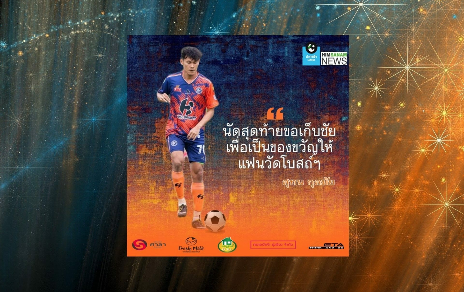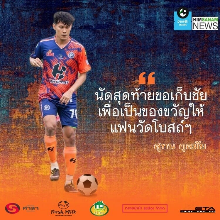 “กอล์ฟ” สุทน กุลมัย กองกลางวัยเก๋า ตำนานหมายเลข 7 “หนูนาจอมโหด” วัดโบสถ์ ซิตี้ ผู้ทำประตูตีเสมอในนัดที่เปิดบ้านรับเชียงราย ซิตี้ ที่ผ่านมา นัดเยือน “คาวบอยแม่โจ้” แม่โจ้ ยูไนเต็ด ขอพาทีมจบอันดับที่ดีที่สุดในฤดูกาลนี้เพื่อตอบแทนแฟนบอลที่เป็นกำลังใจให้กันตลอดมา พร้อมชี้เป้าหมายส่วนตัวยังอยากอยู่กับฟุตบอลจนกว่าจะเล่นไม่ไหวหรือไม่ก็ผันตัวเองไปเป็นโค้ช