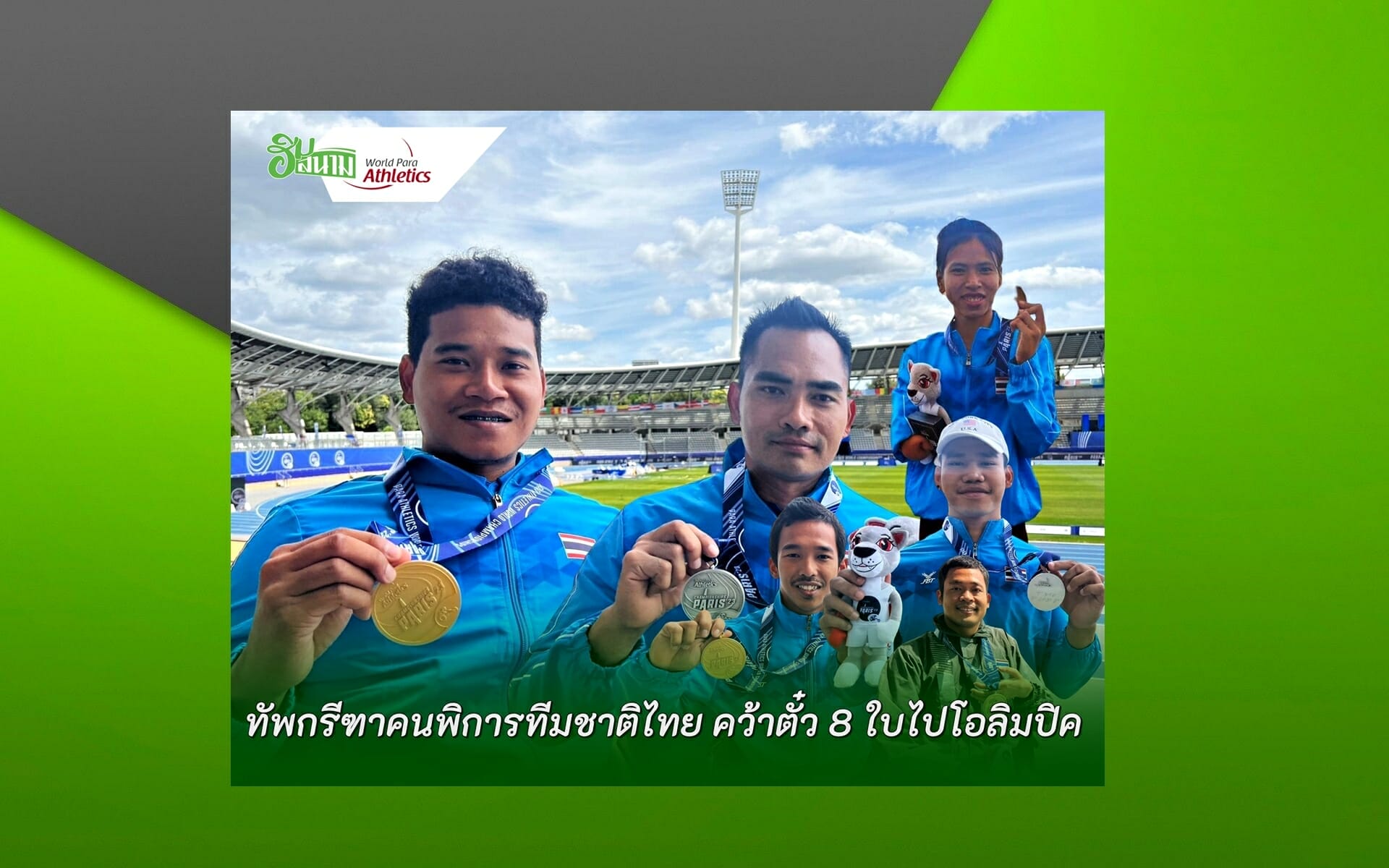 ฮิมสนามขอเเสดงความชื่นชมกับผลงานของนักกรีฑาคนพิการทีมชาติไทย ที่ทำได้ 5 เหรียญทอง 3 เหรียญเงิน 4 เหรียญทองเเดง ในการเเข่งขันกรีฑาคนพิการชิงแชมป์โลกรายการ เวิลด์ พารา แอธเลติก แชมเปี้ยนชิพ 2023 ประเทศฝรั่งเศส พร้อมคว้าตั๋ว 8ใบไปลุยพาราลิมปิกเกมส์ ปารีส 2024